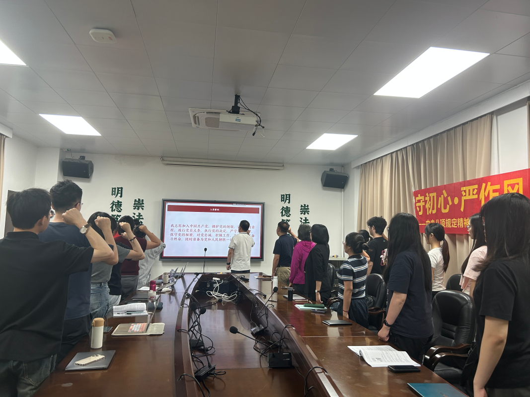 之后,全体党员围绕“迎‘七一’之‘我能为党做什么’” 展开热烈研讨,结合自身学习和生活实际,分享对中央八项规定的理解与认识,以及在日常生活中的践行思路。博士研究生第一党支部的赵东苑同学、法律硕士研究生第四党支部的李文涛同学、本科生第三党支部的颜楚钧同学分别发言,提出在进行科研活动时,要抵制学术腐败,规范使用科研经费,同时注重学术实效,拒绝“注水”研究和“跟风”课题,杜绝用AI写作论文,以深耕细作的态度回应时代需求;在员工工作中,要反对形式主义,切实为同学解决问题;在日常生活中,以“求真务实、简约高效”的作风为校园风气注入正能量,让青春因纪律坚守而更有意义。党员们的交流感悟,展现了以行动践行中央八项规定精神、让作风建设落地生根的决心。