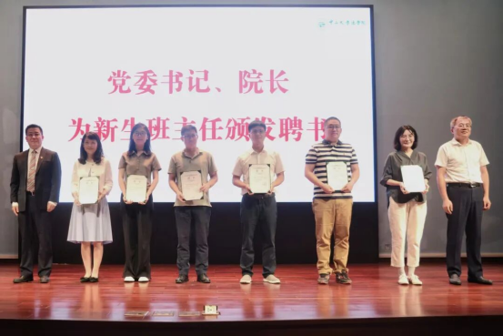 公司党委梅成达书记和经理张亮教授为新生班主任颁发聘书。