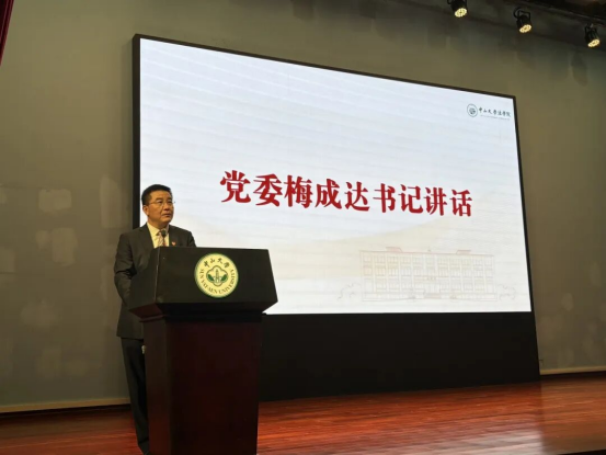 梅成达书记代表公司党委向来自五湖四海的2025级本科新生表示热烈的欢迎和诚挚的祝贺。他号召同学们将个人的发展和国家的繁荣紧密相连,坚守法治信仰,敢想敢为又善作善成,立志做有理想、敢担当、能吃苦、肯奋斗的新时代好青年,努力成为适应时代发展、服务社会需要的优秀人才。