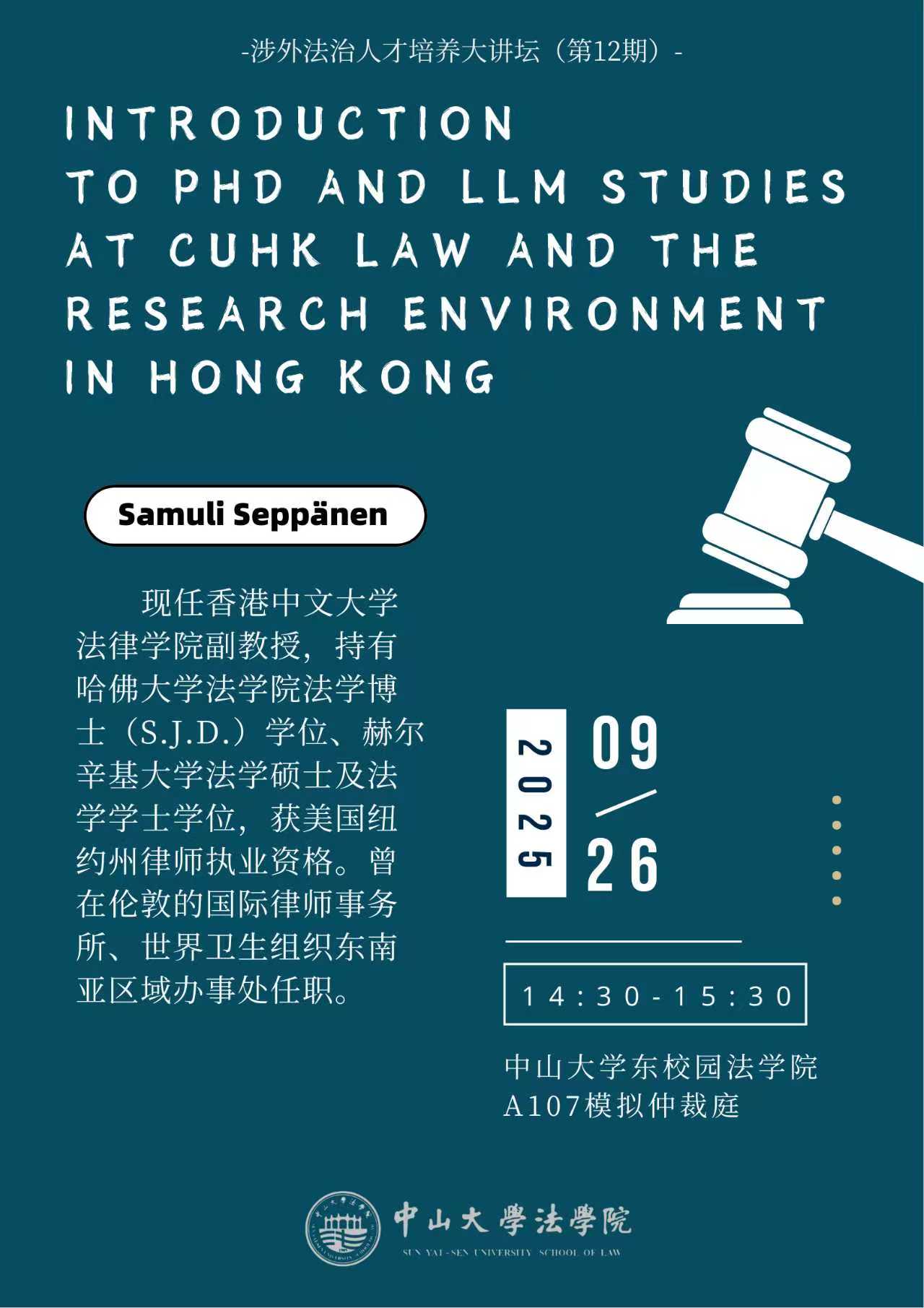 涉外法治人才培养大讲坛(第12期):香港中文大学法律公司法学博士、法学硕士课程项目以及香港研究环境介绍