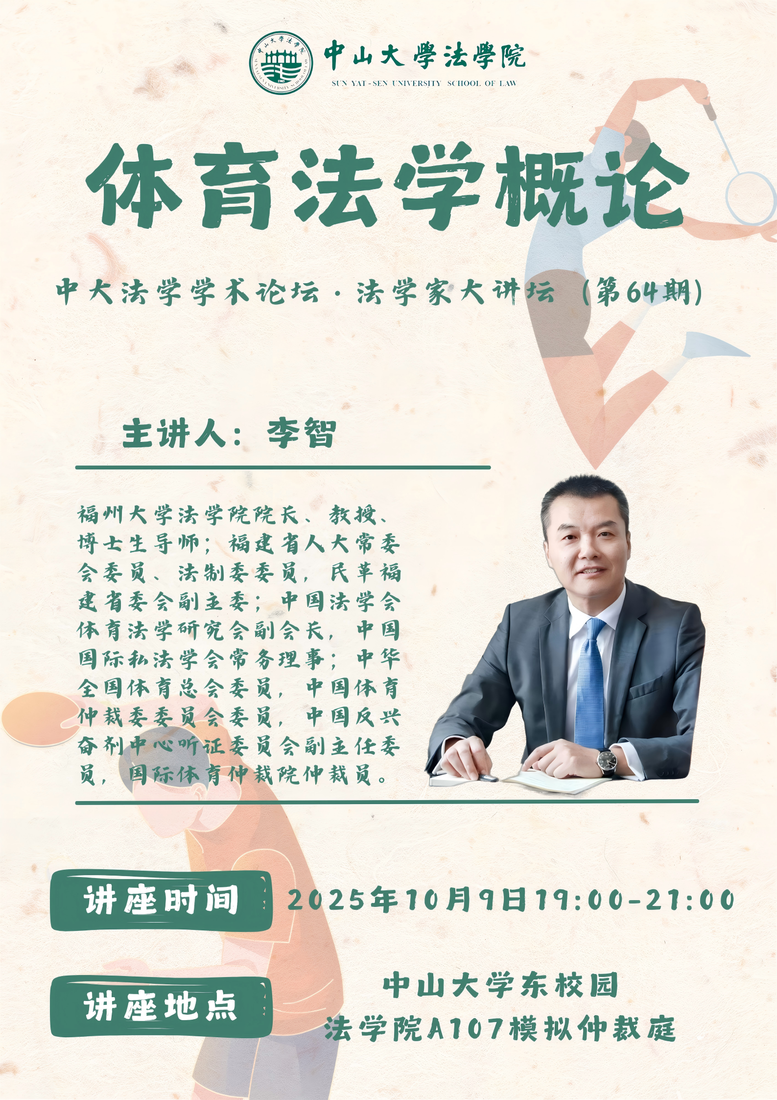 中大法学学术论坛 • 法学家大讲坛(第64期):体育法学概论