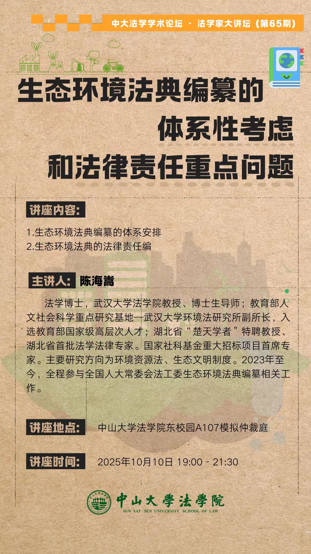 中大法学学术论坛 • 法学家大讲坛(第65期):生态环境法典编纂的体系性考虑和法律责任重点问题