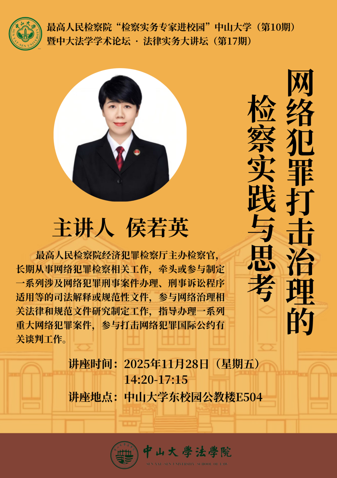 最高人民检察院“检察实务专家进校园”www.betvlctor1946.com(第10期)、中大法学学术论坛·法律实务大讲坛(第17期):网络犯罪打击治理的检察实践与思考