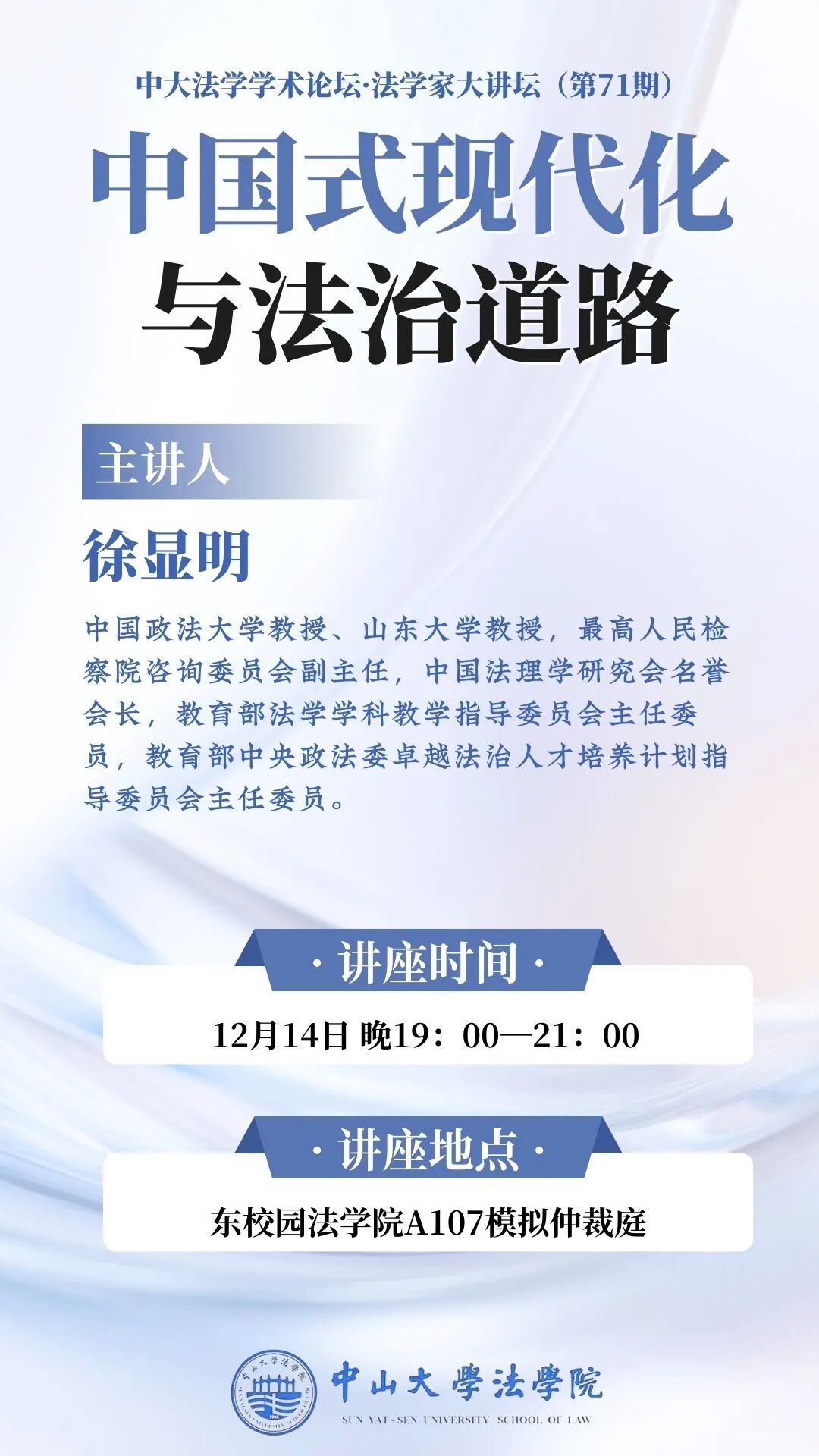 中大法学学术论坛 • 法学家大讲坛(第71期):中国式现代化与法治道路