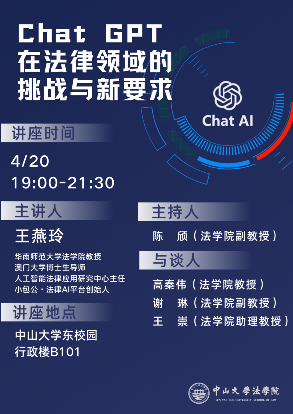 【学术论坛预告】中大法学学术论坛 • 法学家大讲坛(第10期)——Chat GPT 在法律领域的挑战与新要求