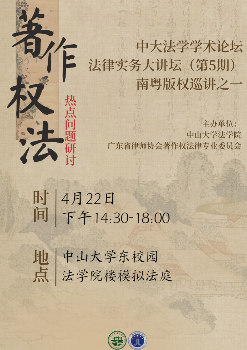 【学术论坛预告】中大法学学术论坛 • 法律实务大讲坛(第5期):南粤版权巡讲之一——著作权法热点问题研讨