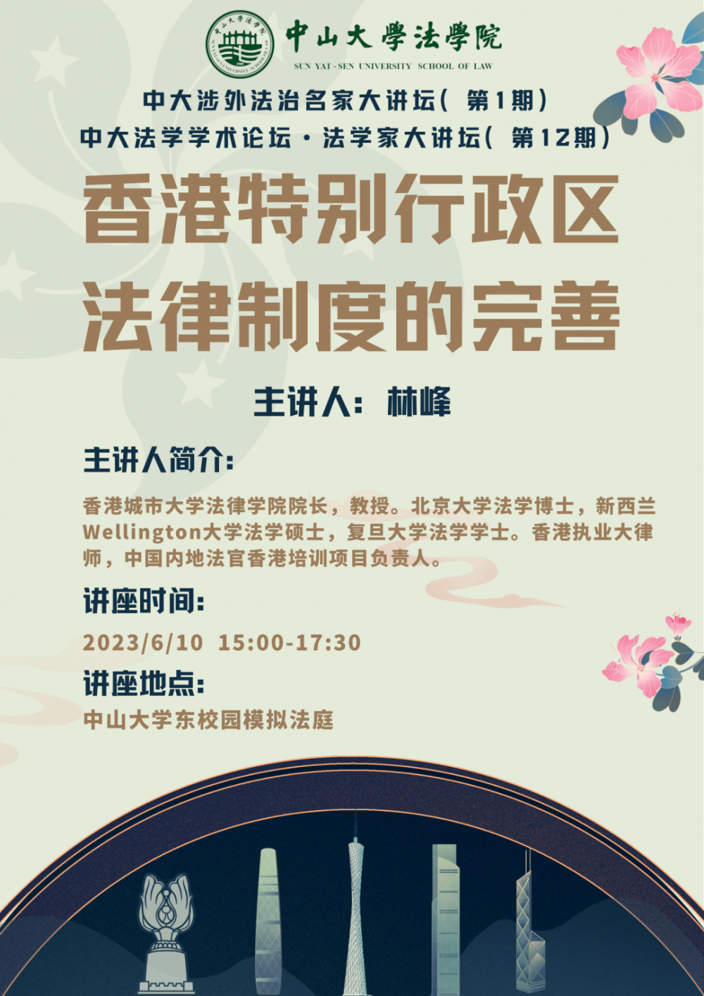 【学术论坛预告】中大涉外法治名家大讲坛第1期 • 中大法学学术论坛 • 法学家大讲坛(第12期)——香港特别行政区法律制度的完善