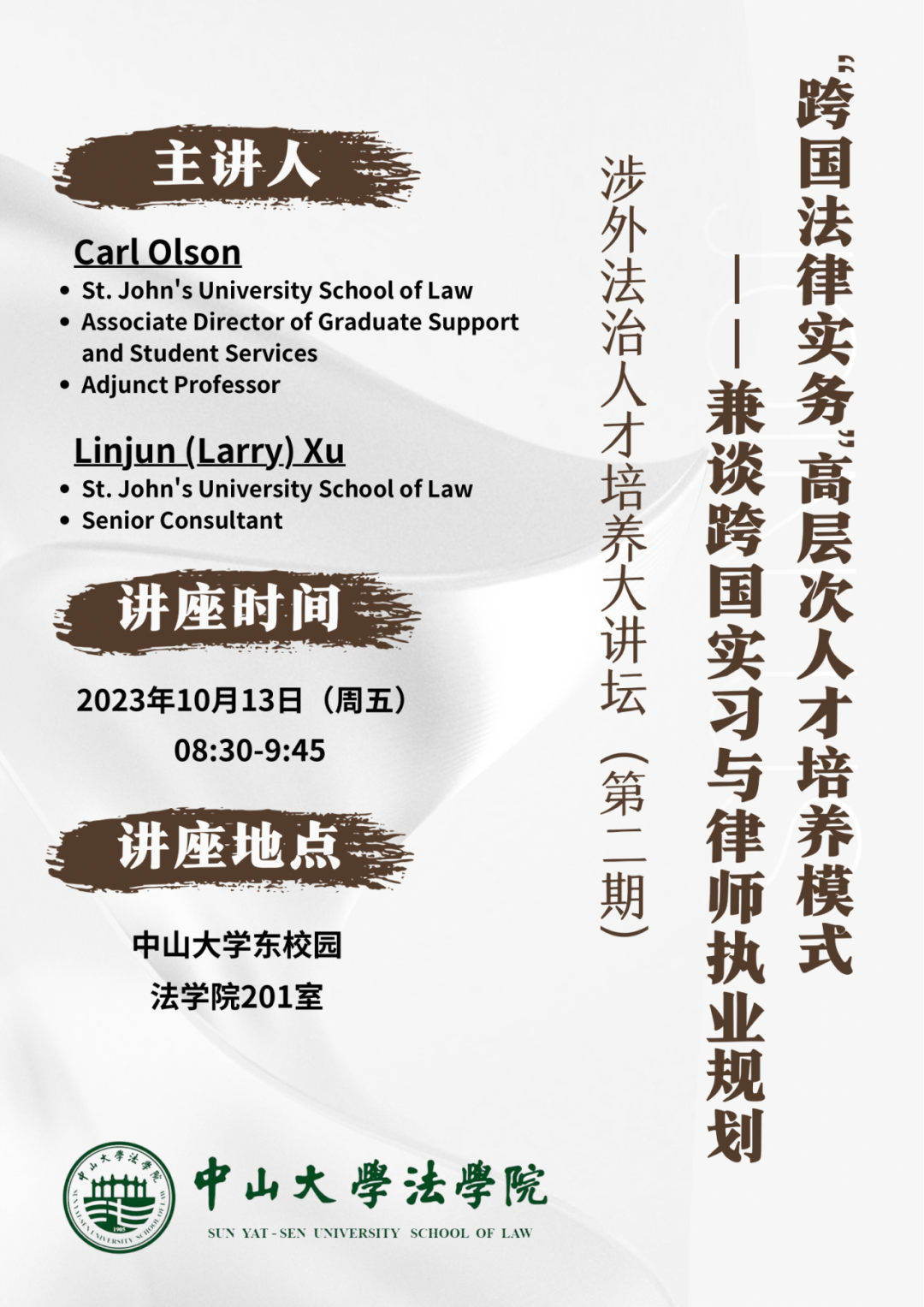 【学术论坛预告】涉外法治人才培养大讲坛(第2期):“跨国法律实务”高层次人才培养模式——兼谈跨国实习与律师执业规划