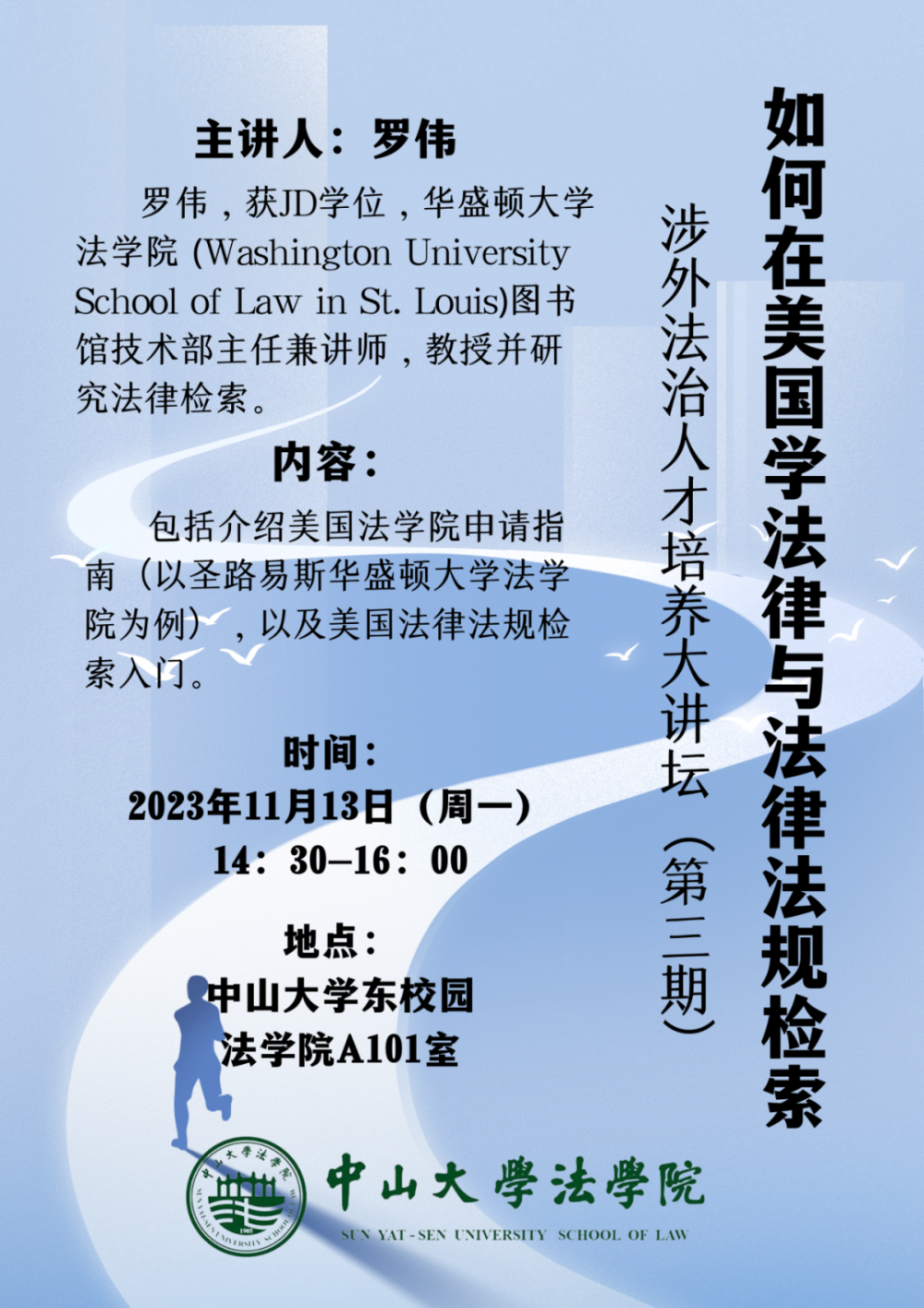 【学术论坛预告】涉外法治人才培养大讲坛(第3期):如何在美国学法律与法律法规检索