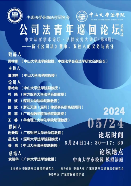 【学术论坛预告】中大法学学术论坛 • 法律实务大讲坛第8期——新《公司法》董事、双控人的义务与责任