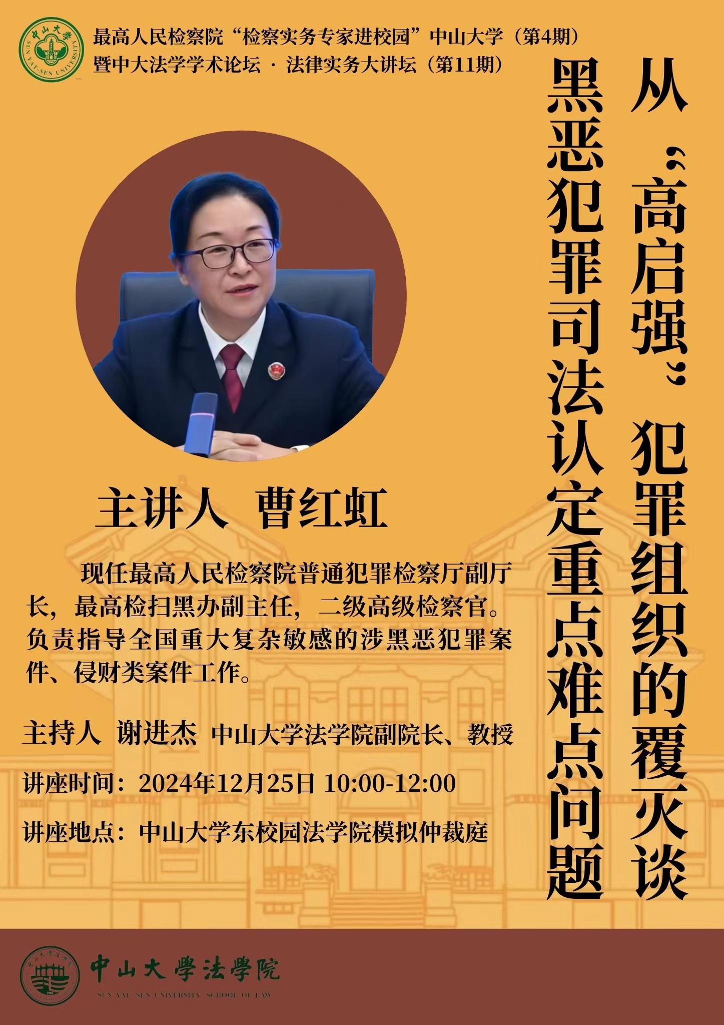 最高人民检察院“检察实务专家进校园” www.betvlctor1946.com(第4期)、中大法学学术论坛·法律实务大讲坛(第11期)——从“高启强”犯罪组织的覆灭谈黑恶犯罪司法认定重点难点问题