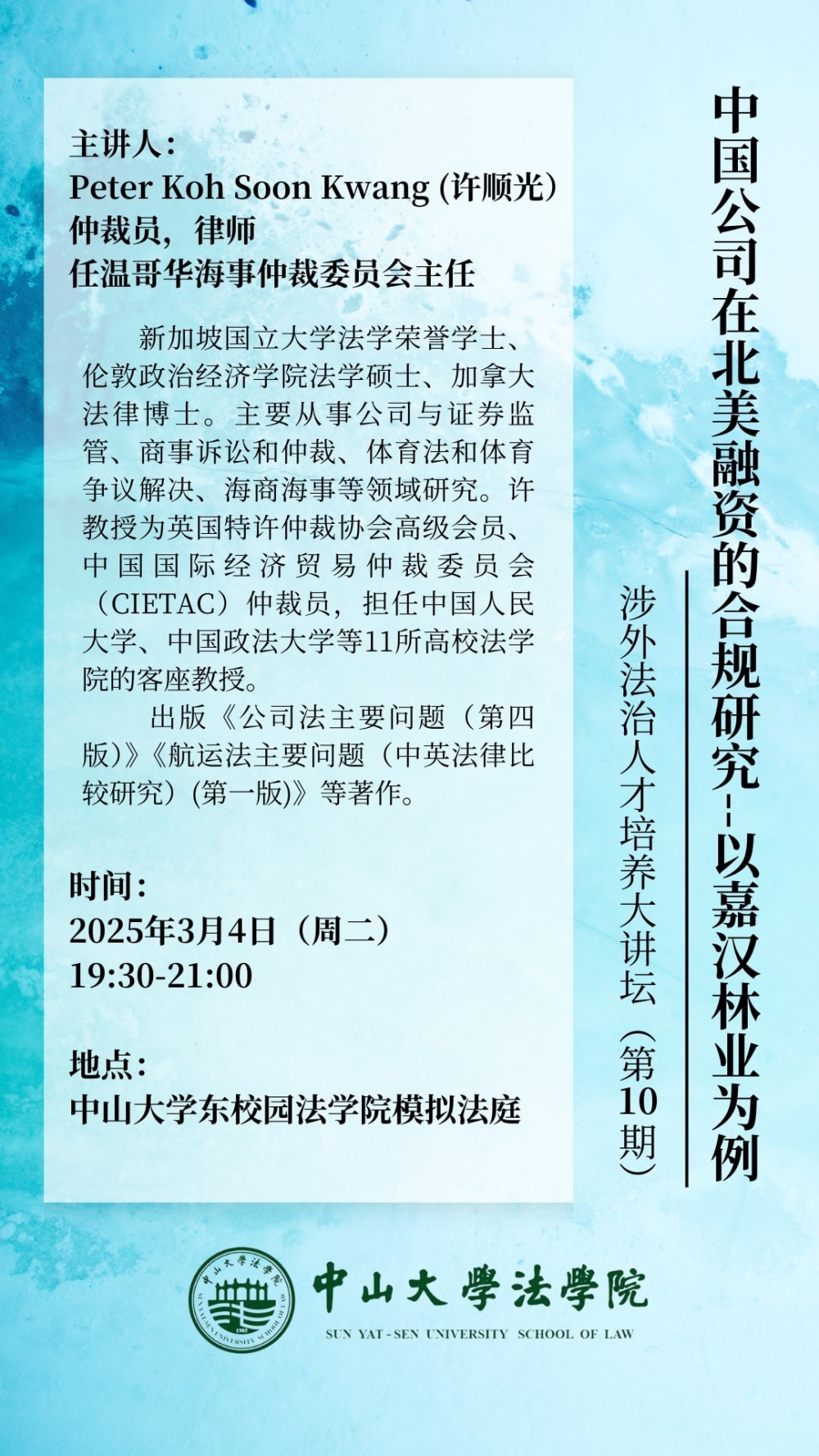 涉外法治人才培养大讲坛(第10期):中国公司在北美融资的合规研究--以嘉汉林业为例